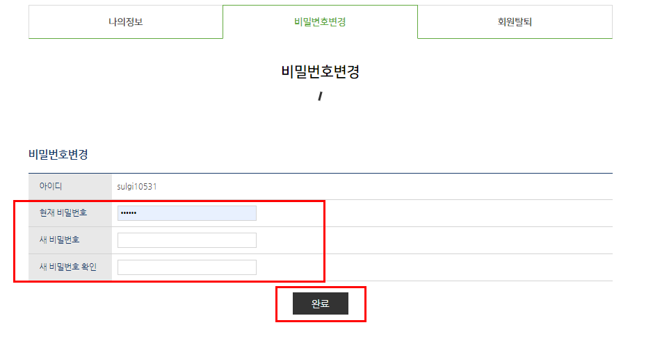 - 새 비밀번호 확인 : 변경하실 비밀번호 다시 입력